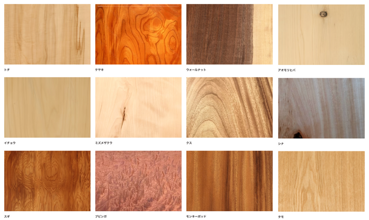 100種類以上ございます。同じ樹種でも個体により差があります。ぜひ、こちらの一覧からお選びください。
