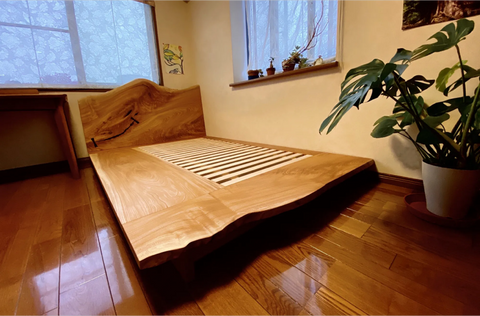 木の生命力に包まれる。ケヤキの一枚板ベッド